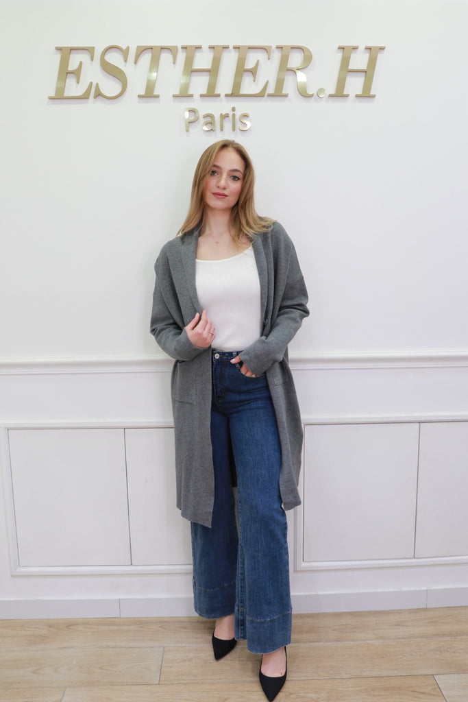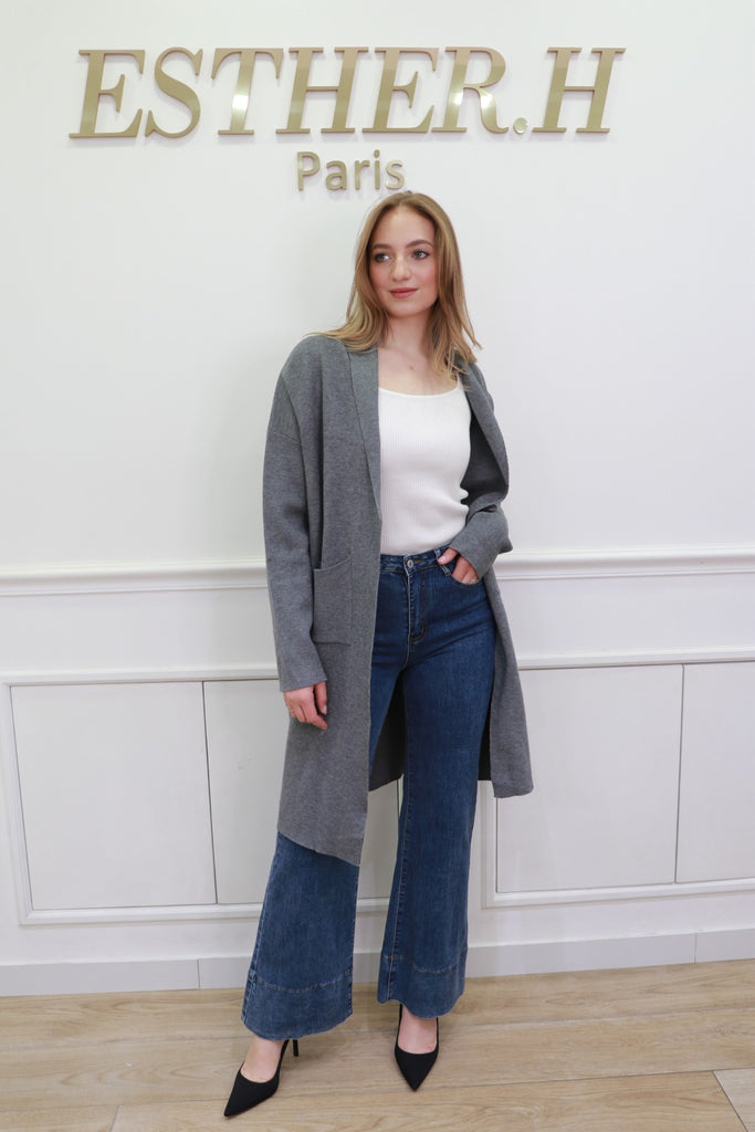 Long Open Front Knit Cardigan