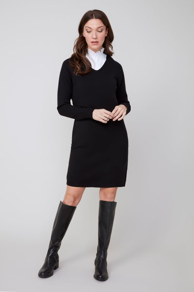 Long Sleeve Knit V-Neck Dress