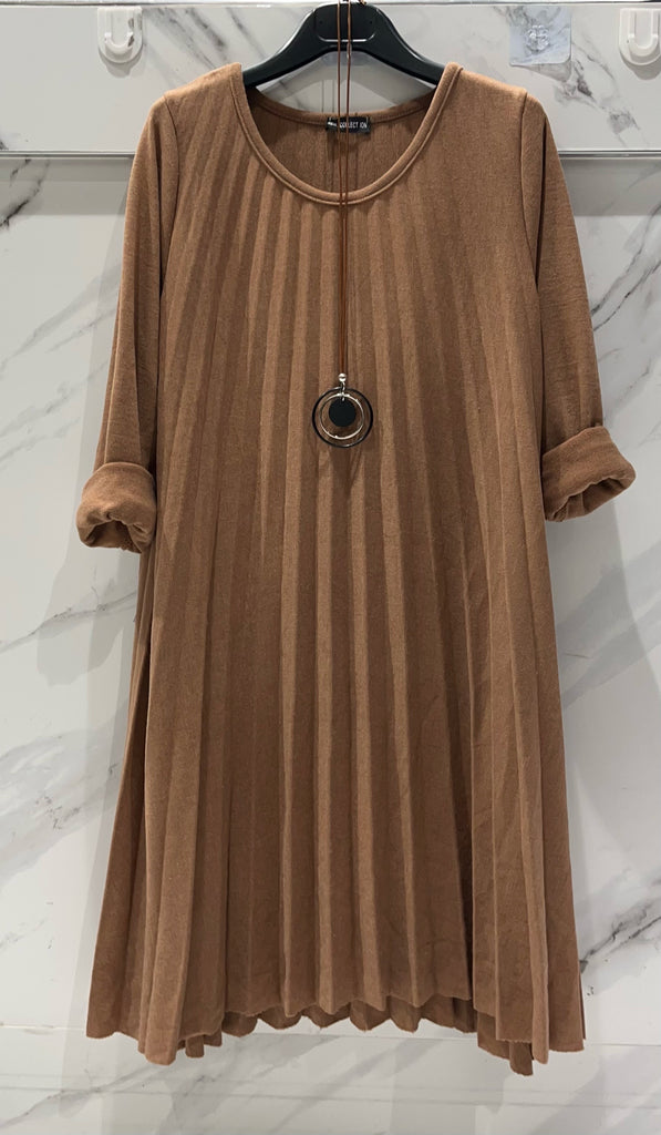 Long Sleeve Pleat Wool Mixed Dress