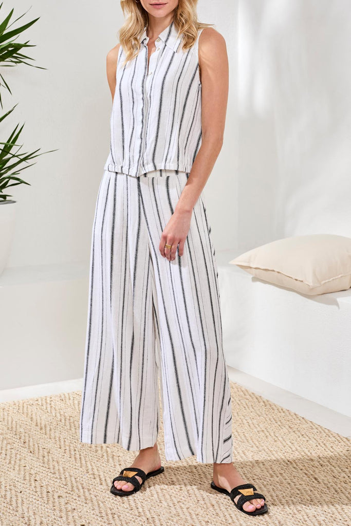 Hidden Placket Stripe Shirt With Elastic Waist