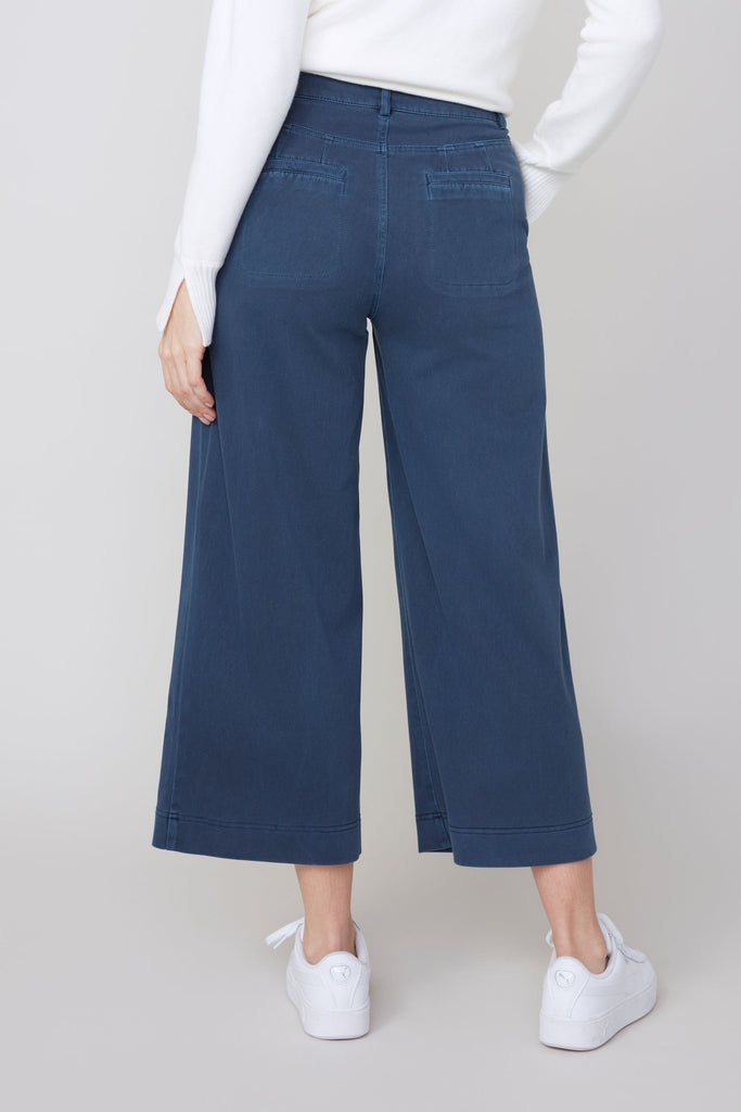 Cropped Wide Leg Cotton Mix Pants