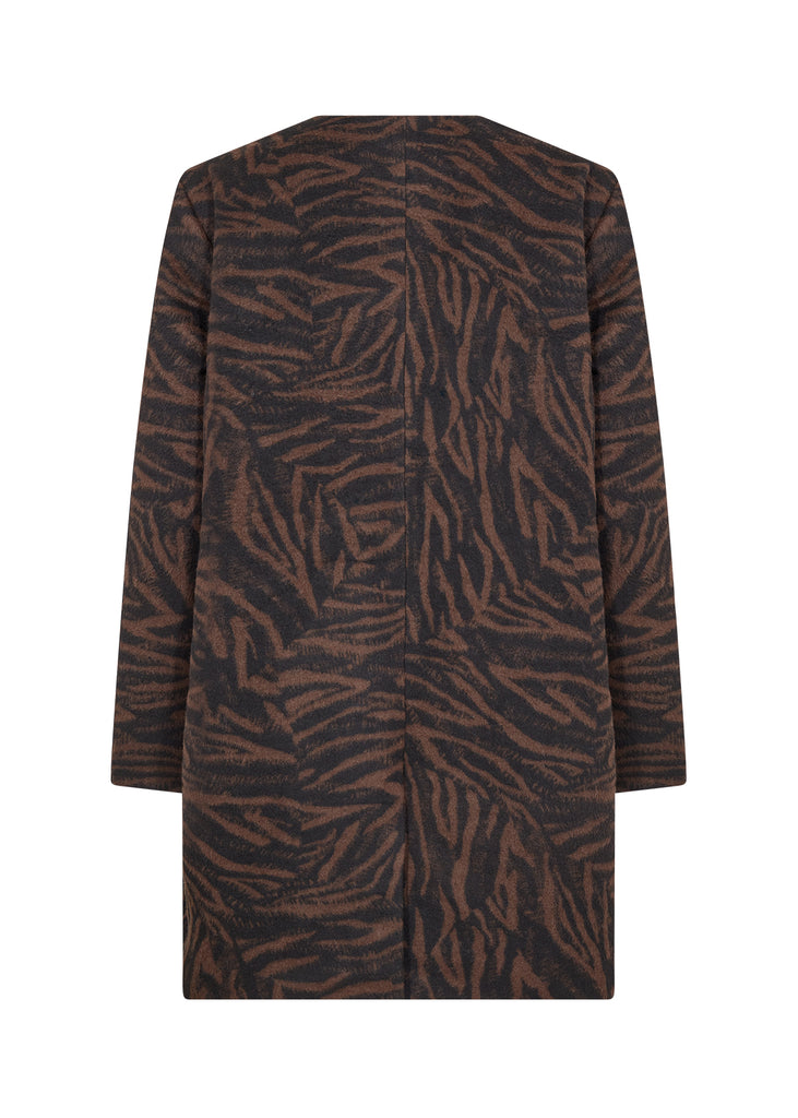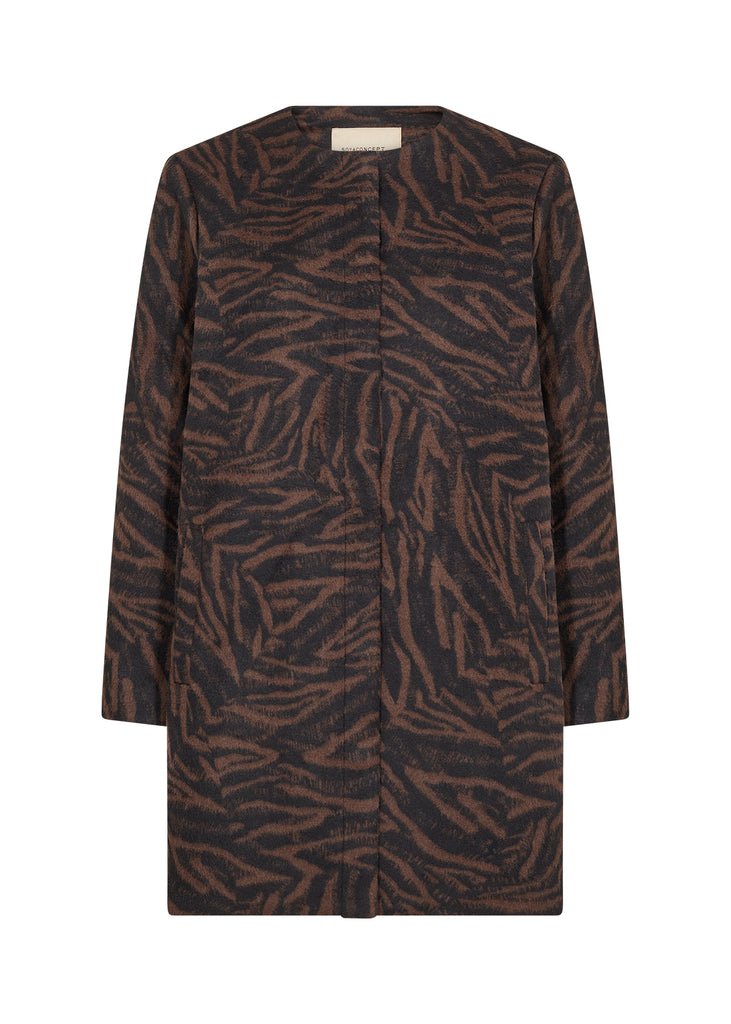 - Designed with a round collar, hidden button closure, knee-length cut, and a striking abstract print.
