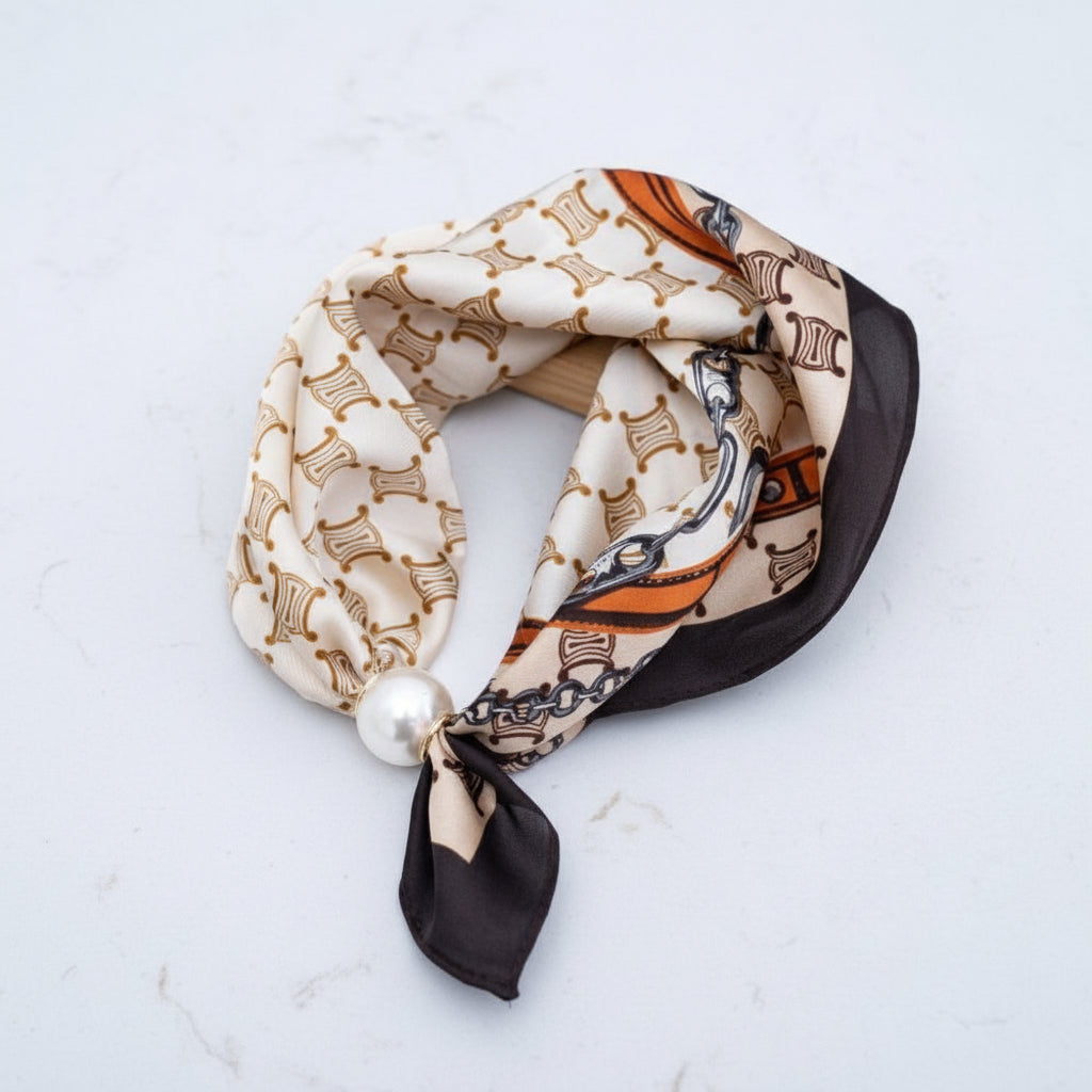 Monogram Geometric Pattern Silky Bandana Neck Scarf