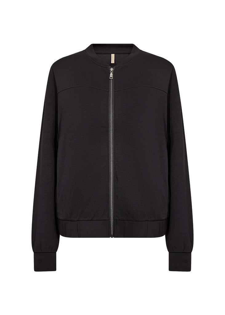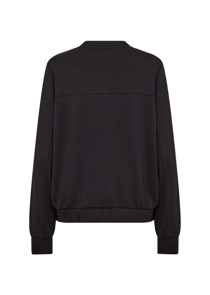 - This sweatshirt features a full-length zipper, a ribbed collar, and cuffed sleeves, presenting a sleek surface